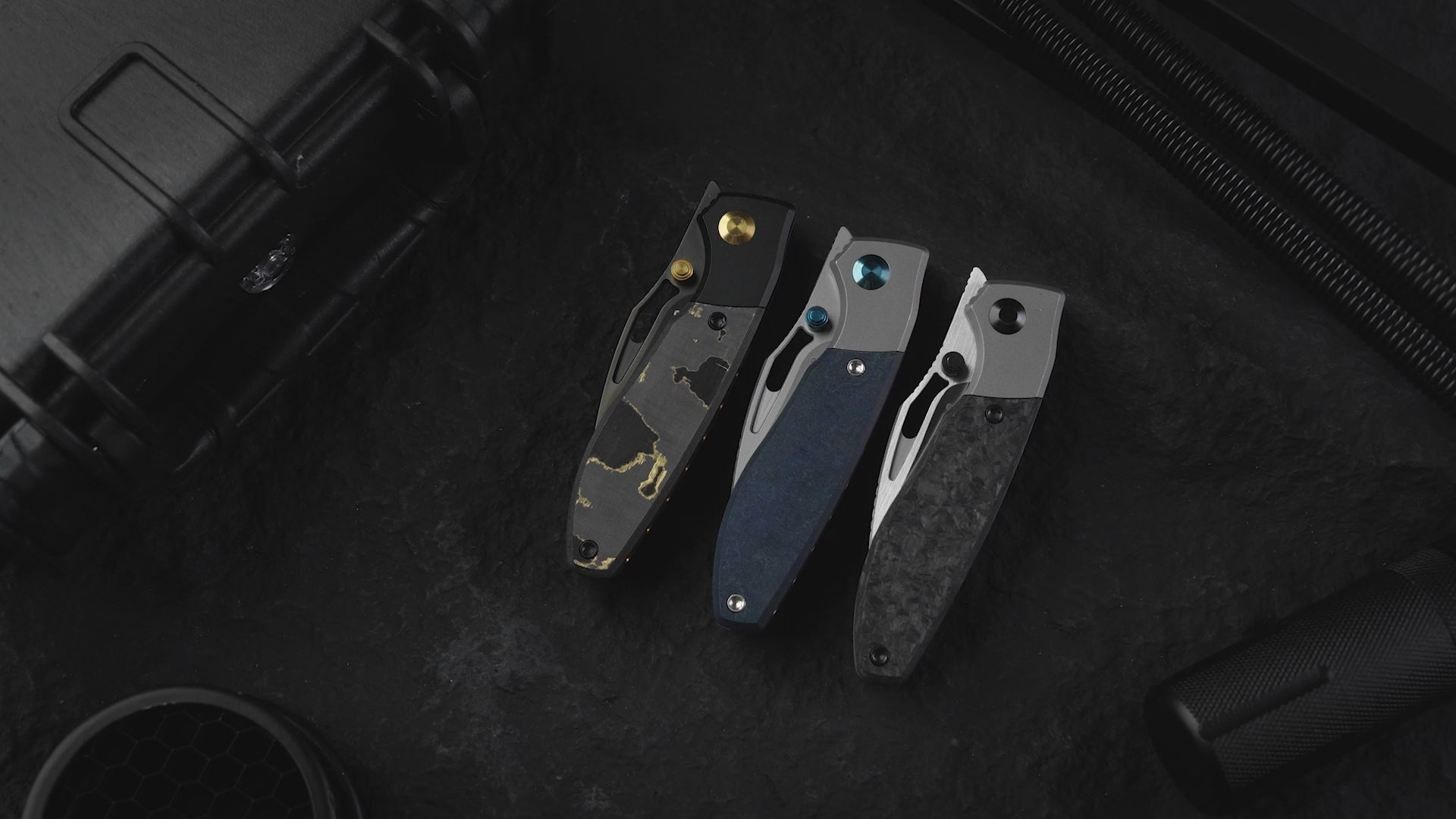 The handle combines a  titanium bolster with a premium carbon fiber inlay. This pairing offers exceptional durability and a striking visual contrast. The titanium provides structural integrity, while the carbon fiber ensures a lightweight, comfortable grip that is resistant to wear and corrosion.