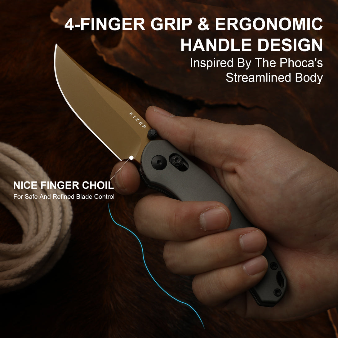 This knife incorporates a comfortable four-finger handle design, inspired by the Phoca's hydrodynamic form. The handle perfectly follows the palm's natural curve, delivering superior comfort, a slip-resistant grip, and agile handling. Combined with meticulous attention to detail—from material selection to craftsmanship—it elevates the product's premium feel, durability, and practical utility.