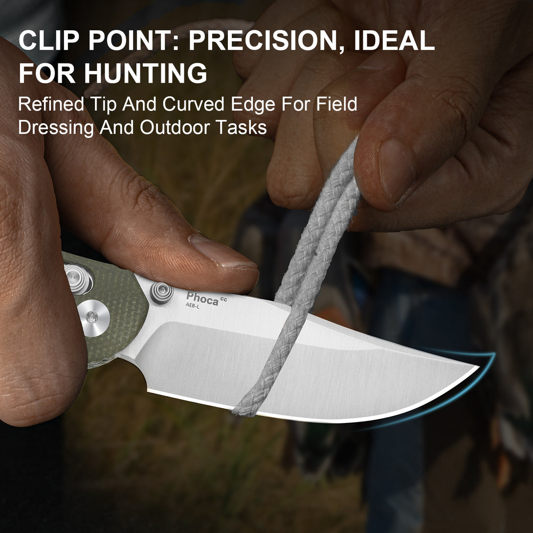 Features the Clip Point blade, offering a sharper, more controllable tip and gently curved edge for smooth, precise cutting. Its refined shape is ideal for hunting tasks such as field dressing and skinning, while remaining versatile for various outdoor activities.