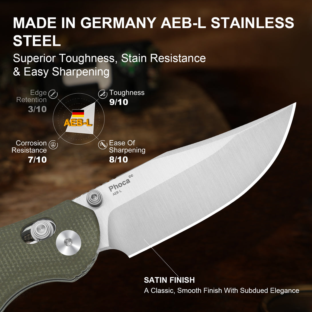 This blade is crafted from AEB-L stainless steel, which is highly regarded for its excellent toughness, good corrosion resistance, and ease of sharpening to a razor - like edge, ideal for daily carry and maintenance.
