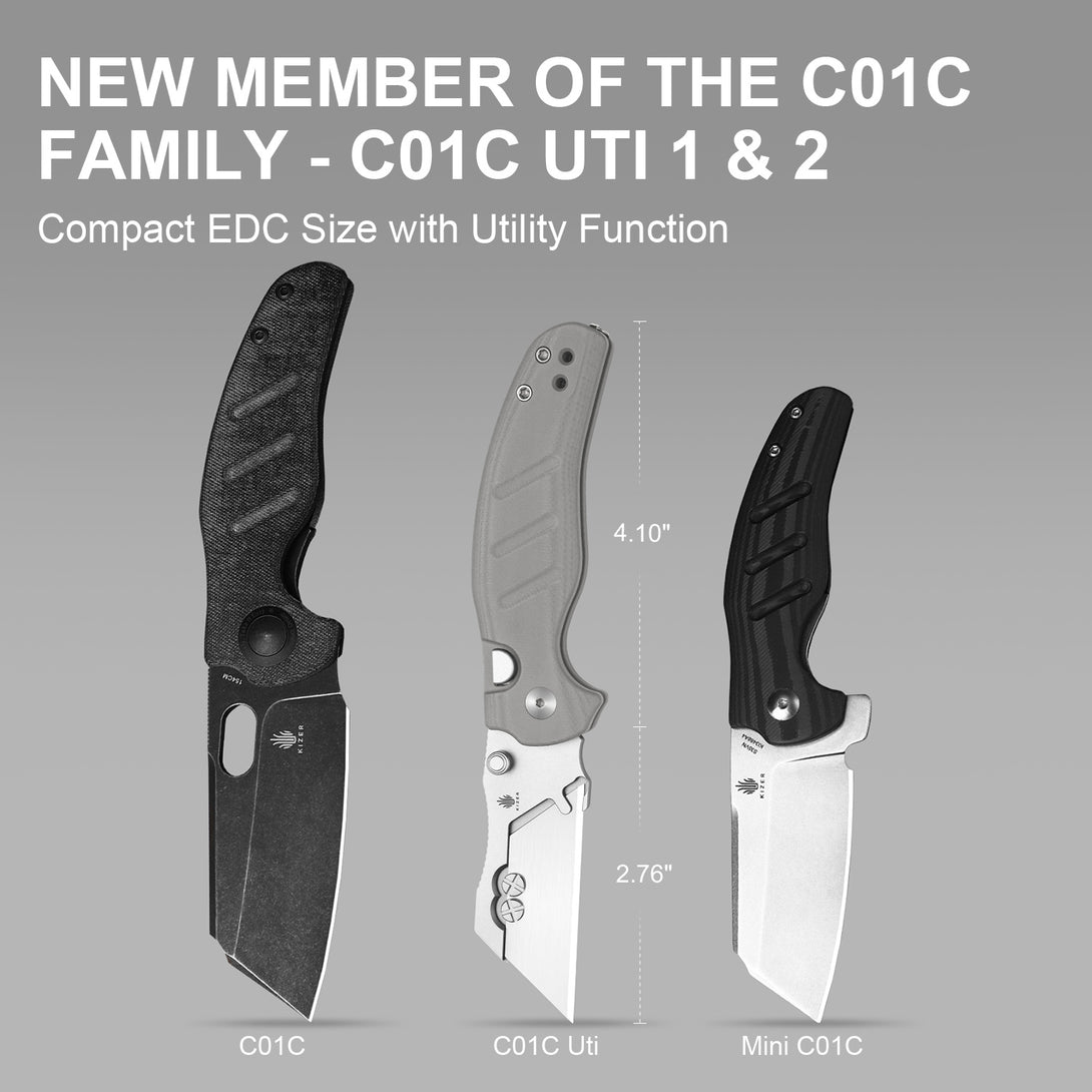 The C01C Uti 1 & 2 reinterpret the Mini C01C as compact utility folding knives. Available in screw and screwless versions, they keep the recognizable Sheepdog Knives design language while offering practical utility for daily cutting tasks.