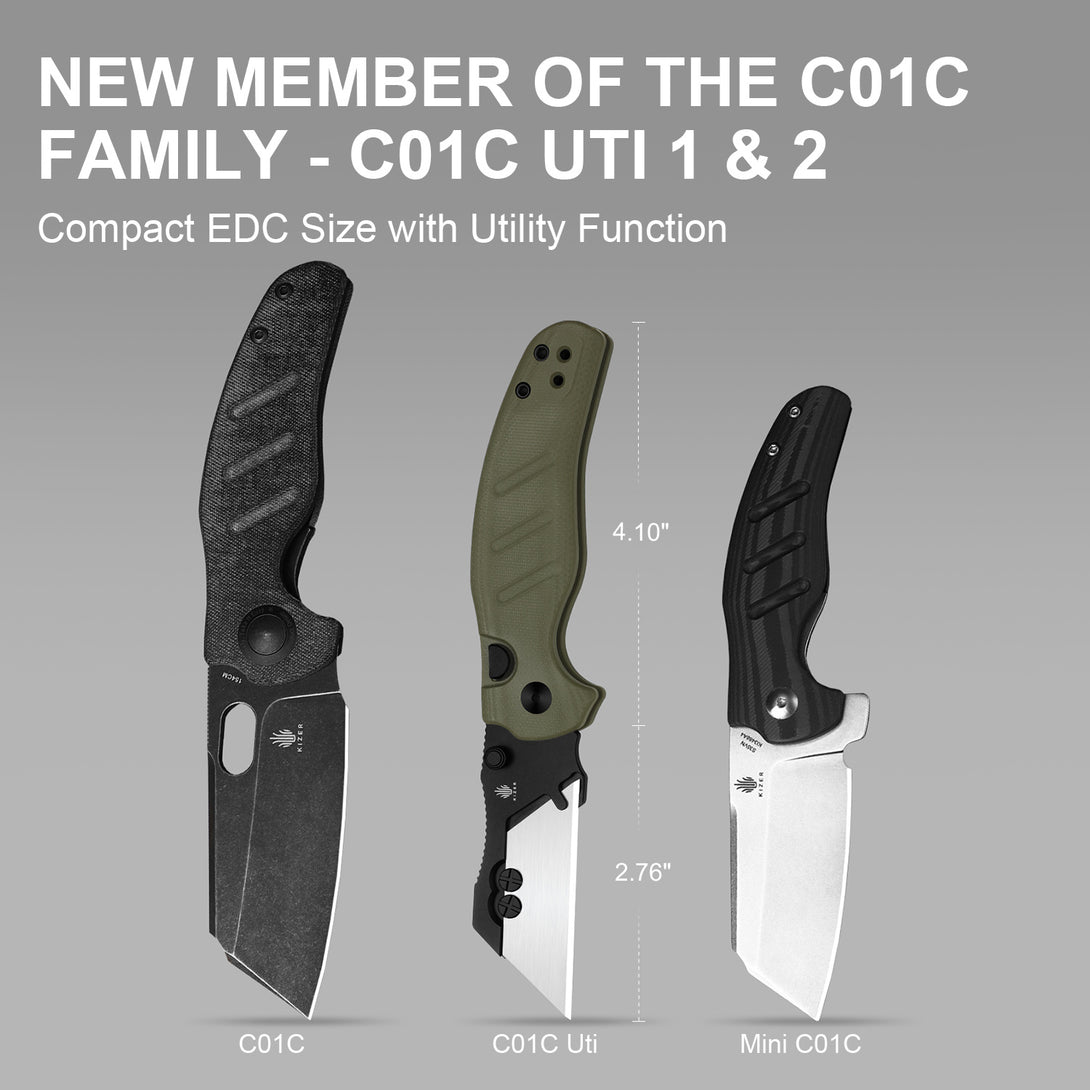 The C01C Uti 1 & 2 reinterpret the Mini C01C as compact utility folding knives. Available in screw and screwless versions, they keep the recognizable Sheepdog Knives design language while offering practical utility for daily cutting tasks.