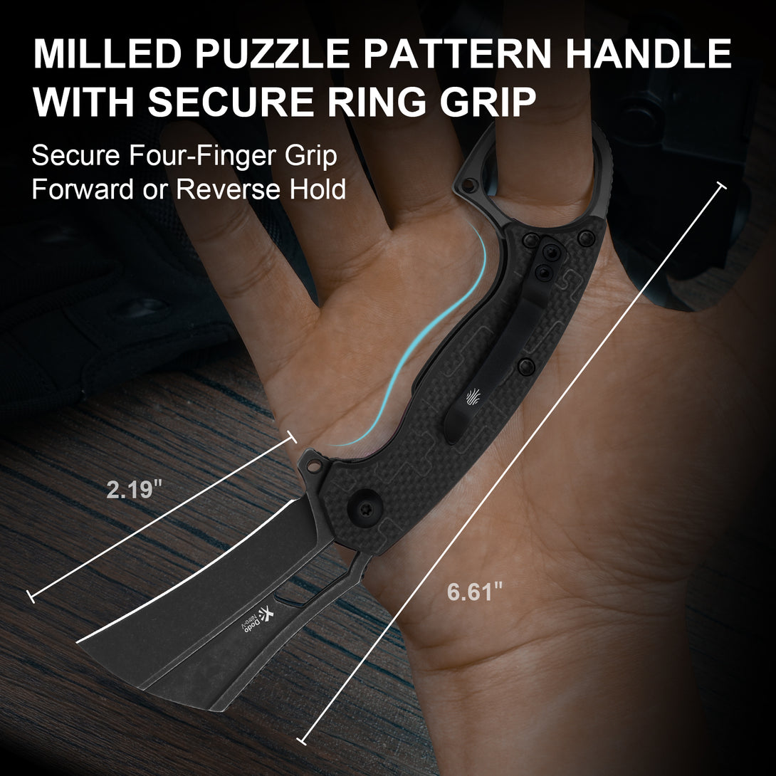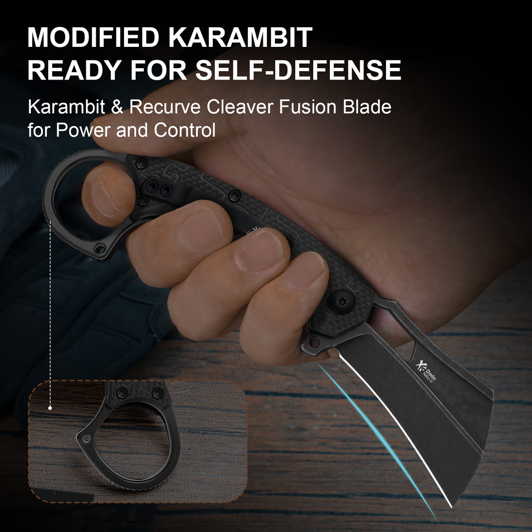This is the Karambit, evolved. It combines the secure finger ring and iconic curve with the powerful, broad blade of a recurve cleaver. The ring ensures a quick, solid grip for instant readiness, while its modernized arc is more versatile and less intimidating than traditional models.