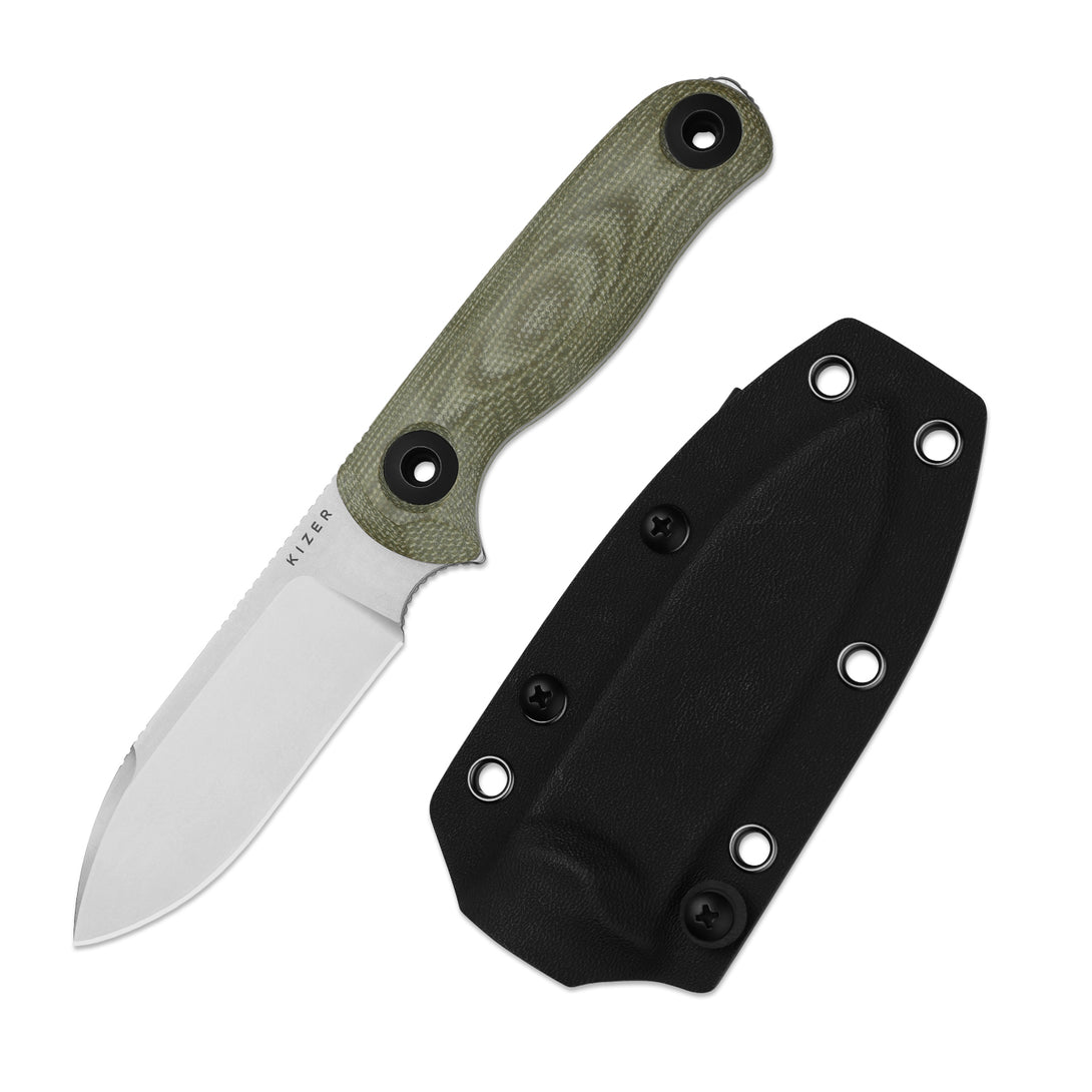 Ergonomic handle with skeletonized tang offers comfort and control for camping, hunting, and outdoor tasks. Micarta handle scales provide a stable, secure grip and accommodate a four-finger hold.