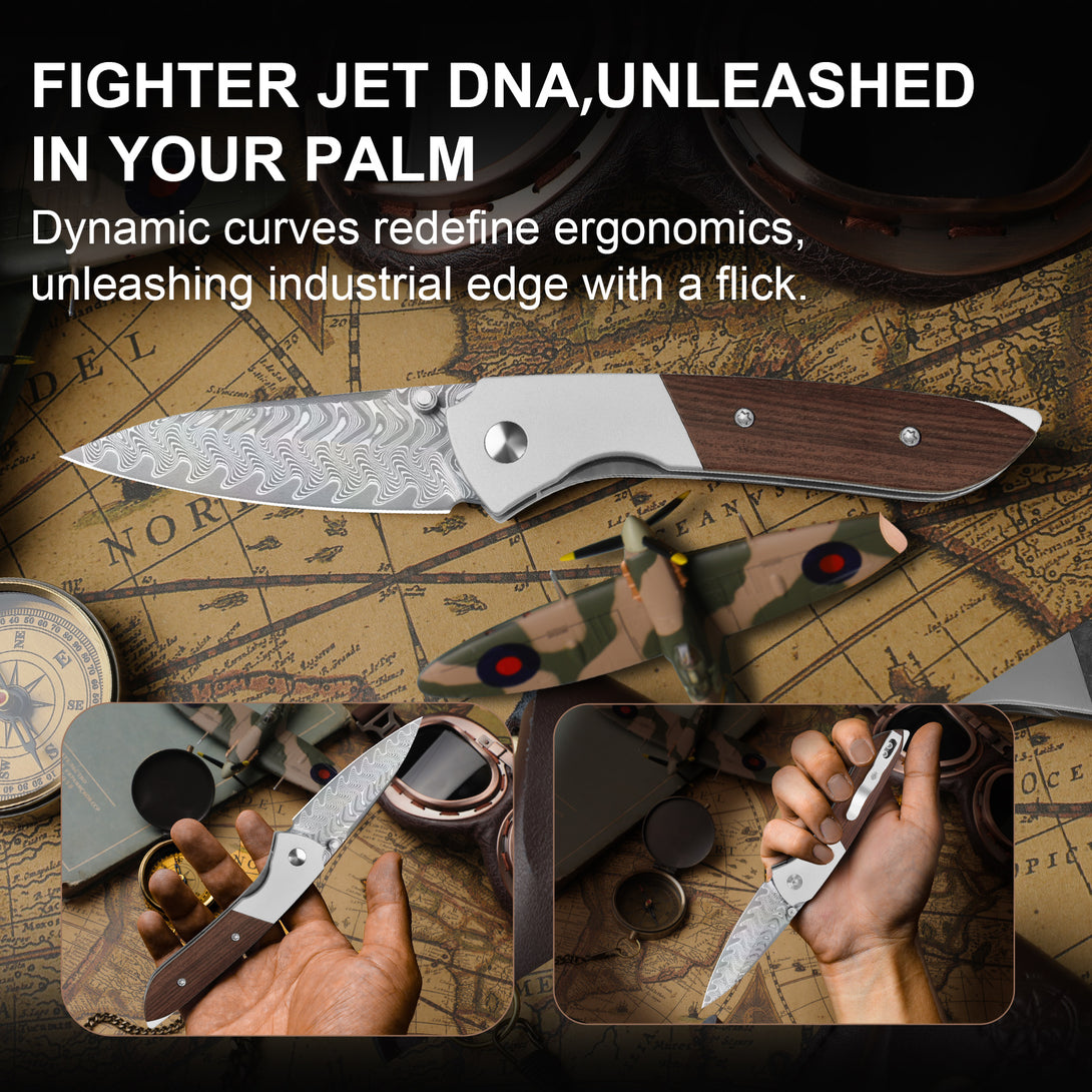 Spitfire | Vibrant Acid-Washed Finish | Damascus Steel | Aluminum & Mkuruti Wood | V3690A4