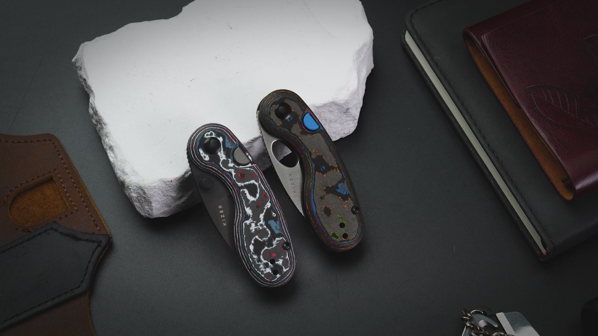 Microbe™ | Kizer Button Liner Lock™ | M390 | Camo Carbon 80's | KizerB™ 2742A1