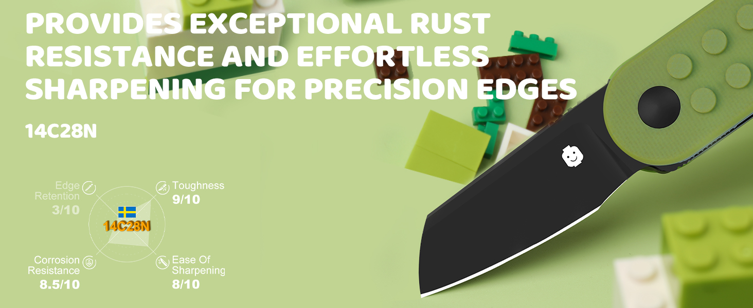 - 14C28N provides exceptional rust resistance and effortless sharpening for precision edges.