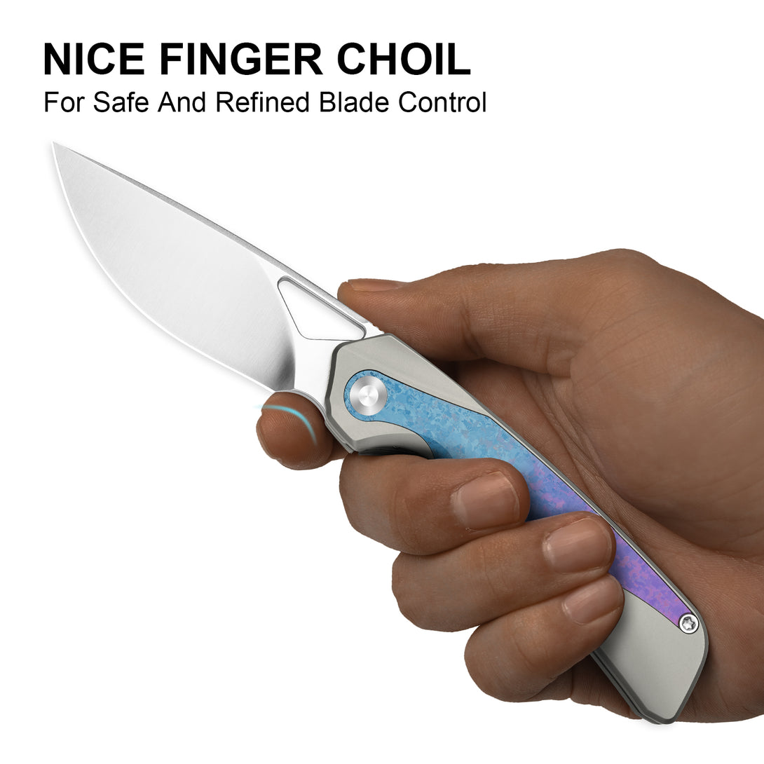 Crafted with a contoured titanium handle that perfectly molds to the hand, reducing fatigue during extended use. The robust frame lock mechanism ensures unwavering blade security and reliable operation. This combination of ergonomic design and locking strength offers a cutting experience that is both comfortable and confidently secure.