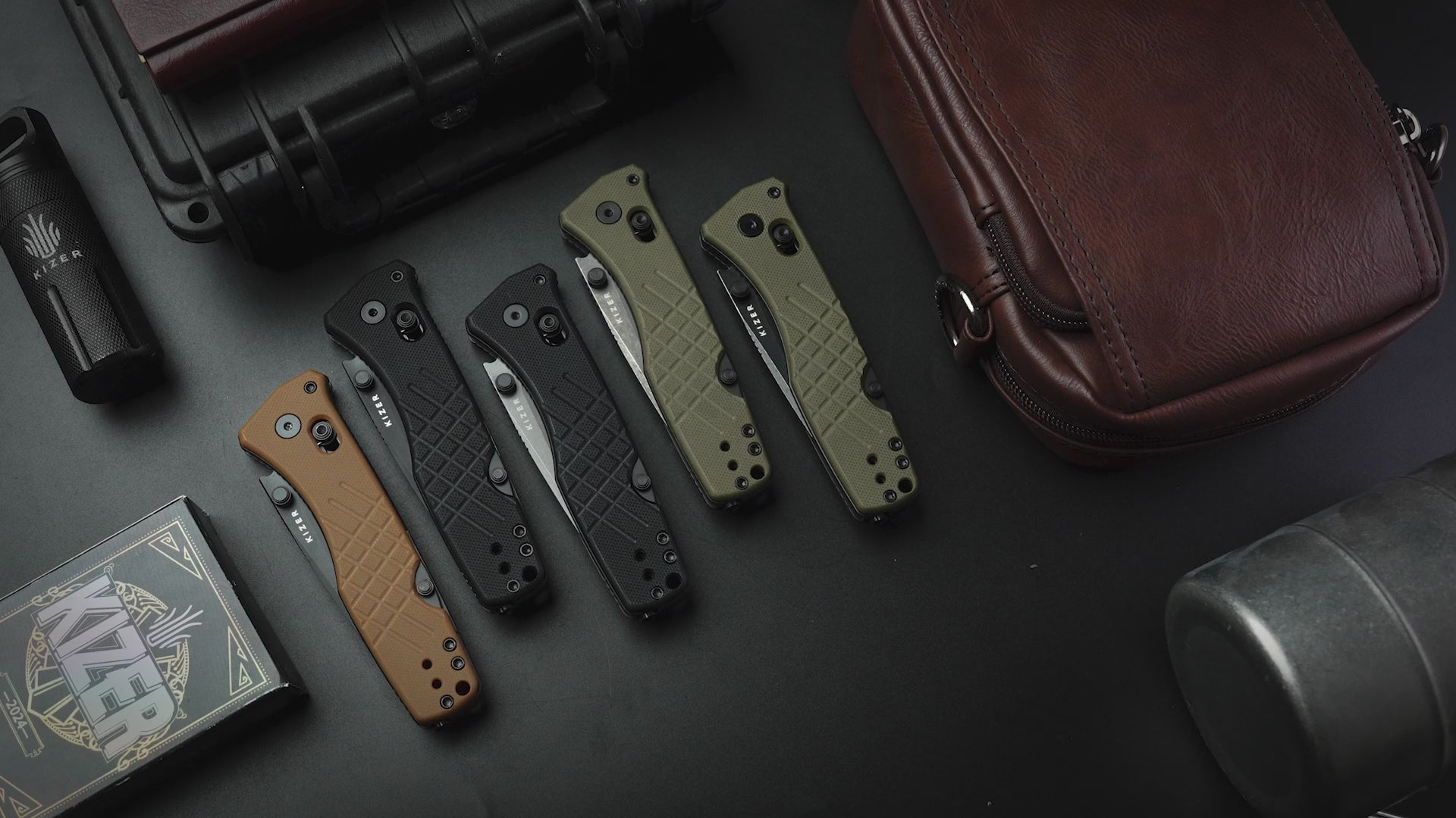 Kizer Clutch Lock™ with multi-tension adjustment holes for customizable lock tightness & secure blade lock-up; responsive thumb stud for smooth one-handed deployment.